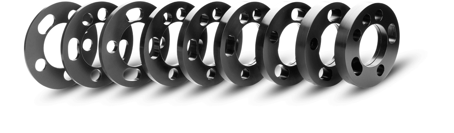 Our bolt-thru system features a multi-hole bolt pattern that covers up to twelve bolt patterns on a single disc. With the innovative ST wheel mounting hardware, the ST DZX Wheel Spacer system is suitable for vehicles with wheel bolts or wheel studs. In combination with our patented wheel hub adapter rings, you can widen the wheel track by 5-25mm per wheel in precise 2.5mm increments.