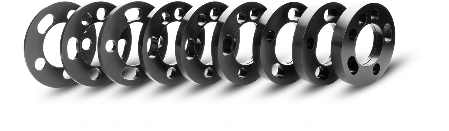 Our bolt-thru system features a multi-hole bolt pattern that covers up to twelve bolt patterns on a single disc. With the innovative ST wheel mounting hardware, the ST DZX Wheel Spacer system is suitable for vehicles with wheel bolts or wheel studs. In combination with our patented wheel hub adapter rings, you can widen the wheel track by 5-25mm per wheel in precise 2.5mm increments.